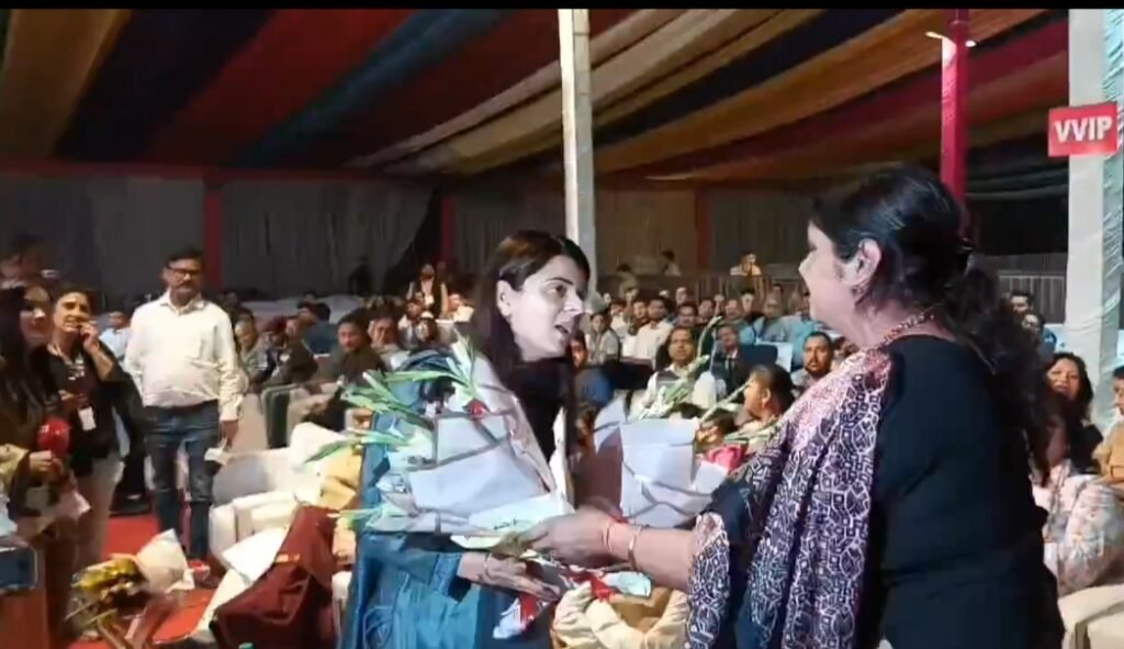आगरा लाईव न्यूज। शिल्पग्राम में चल रहे ताज महोत्सव के समापन समारोह में उत्तर प्रदेश राज्य महिला आयोग की अध्यक्ष बबीता चौहान की नाराजगी देखने को मिली। कार्यक्रम के दौरान प्रशासन की ओर से उनके नाम से पहले बाह से BJP विधायक रानी पक्षालिका सिंह का नाम लिया गया, जिससे वह असंतुष्ट नजर आईं।