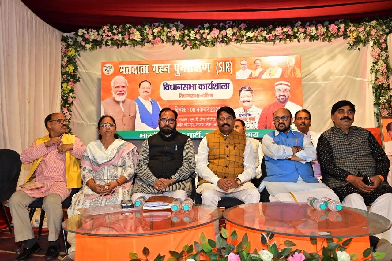आगरा। भारतीय जनता पार्टी दक्षिण विधानसभा की विधानसभा विशेष गहन पुनरीक्षण (एसआईआर) कार्यशाला शनिवार को हरीपर्वत स्थित एच.डी. जैन इंटर कॉलेज सभागार में आयोजित की गई। कार्यक्रम में आगामी मतदाता पुनरीक्षण अभियान को लेकर विस्तृत रूपरेखा तय की गई, जिसमें बूथ स्तर तक कार्यकर्ताओं की सक्रिय भागीदारी पर जोर दिया गया। कार्यशाला का शुभारंभ भाजपा महानगर अध्यक्ष राजकुमार गुप्ता और मुख्य वक्ता प्रदेश के उच्च शिक्षा मंत्री योगेंद्र उपाध्याय ने पंडित दीनदयाल उपाध्याय, डॉ. श्यामा प्रसाद मुखर्जी और भारत माता के चित्र के समक्ष दीप प्रज्वलित कर किया।