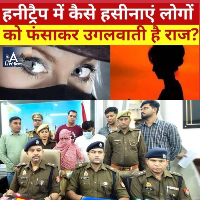 आगरा लाईव न्यूज। कमलानगर पुलिस, सर्विलांस और एसओजी (नगर जोन) की संयुक्त टीम ने शहर में सक्रिय हनीट्रैप और सेक्सटॉर्शन गिरोह का बड़ा भंडाफोड़ किया है। गिरोह में शामिल युवती अपने मीठे और मदमस्त बोल से शिकारों को जाल में फाँसती थी। मुलाकात के दौरान उन्हें नशीला पदार्थ देकर बेहोश कर देती थी और उनके अश्लील व न्यूड वीडियो बनाती थी। बाद में इन्हीं वीडियो के आधार पर लाखों रुपये की वसूली की जाती थी। पुलिस ने गिरोह की महिला सदस्य और उसके सहयोगी गणेश को गिरफ्तार कर लिया है, जबकि गिरोह का संचालन करने वाले रियाज, प्रविन्द्र और पूर्व जिला पंचायत सदस्य प्रवेश भारद्वाज अब भी फरार हैं। इस बीच पुलिस ने एक और बड़ा खुलासा करते हुए गिरोह को संरक्षण देने वाले सिपाही रियाल को भी गिरफ्तार किया है। रियाल कानपुर के रावतपुर थाने में तैनात था, जबकि 2023 तक वह आगरा के कई थानों में भी सेवाएं दे चुका है। पुलिस की जांच में यह साफ हुआ कि वही इंस्टाग्राम और सोशल मीडिया से हाईप्रोफाइल लोगों का चयन कर युवती तक नंबर पहुंचाता था। इस गिरफ्तारी ने पूरे नेटवर्क की जड़ें हिला दी हैं।