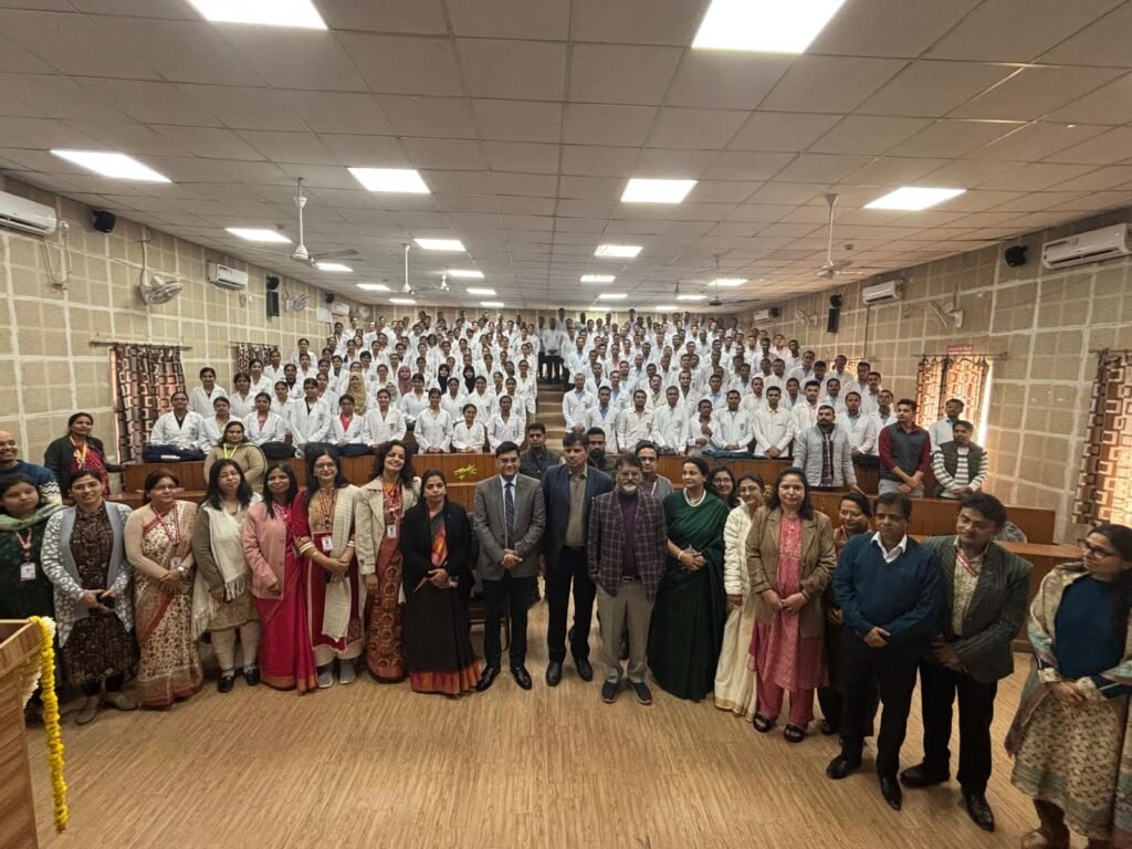 कार्यक्रम की शुरुआत दीप प्रज्ज्वलन और सरस्वती वंदना के साथ हुई, जिसने समारोह को आध्यात्मिक और शैक्षणिक गरिमा प्रदान की। प्रधानाचार्य एवं डीन डॉ. प्रशांत गुप्ता ने अपने संबोधन में कहा कि सफ़ेद कोट केवल एक पोशाक नहीं, बल्कि समाज के प्रति डॉक्टर की जवाबदेही, नैतिकता और विश्वास का प्रतीक है। उन्होंने विद्यार्थियों से आग्रह किया कि वे ज्ञान के साथ-साथ संवेदना, अनुशासन और ईमानदारी को भी अपने चिकित्सकीय जीवन का आधार बनाएं।