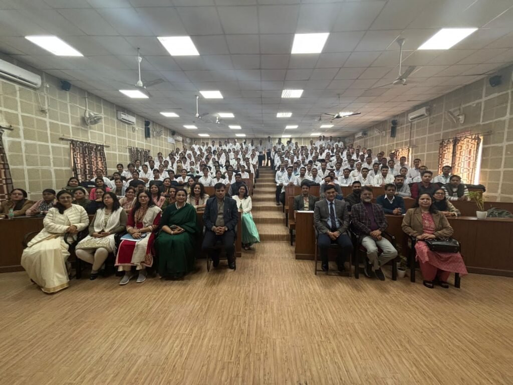 पी.एस.एम. विभागाध्यक्ष डॉ. रेनू अग्रवाल ने सामुदायिक स्वास्थ्य और निवारक चिकित्सा को समाज के लिए अत्यंत आवश्यक बताया। माइक्रोबायोलॉजी विभागाध्यक्ष एवं परीक्षा अधीक्षक डॉ. अंकुर गोयल ने परीक्षा अनुशासन, विश्वविद्यालय नियमों और अकादमिक ईमानदारी की जानकारी दी। सर्जरी विभागाध्यक्ष डॉ. राजेश गुप्ता ने कौशल, धैर्य और आत्मविश्वास के साथ चिकित्सा अभ्यास करने का संदेश दिया, वहीं स्त्री एवं प्रसूति रोग विभागाध्यक्ष डॉ. शिखा सिंह ने महिलाओं के स्वास्थ्य, मातृत्व देखभाल और संवेदनशीलता के महत्व पर प्रकाश डाला।