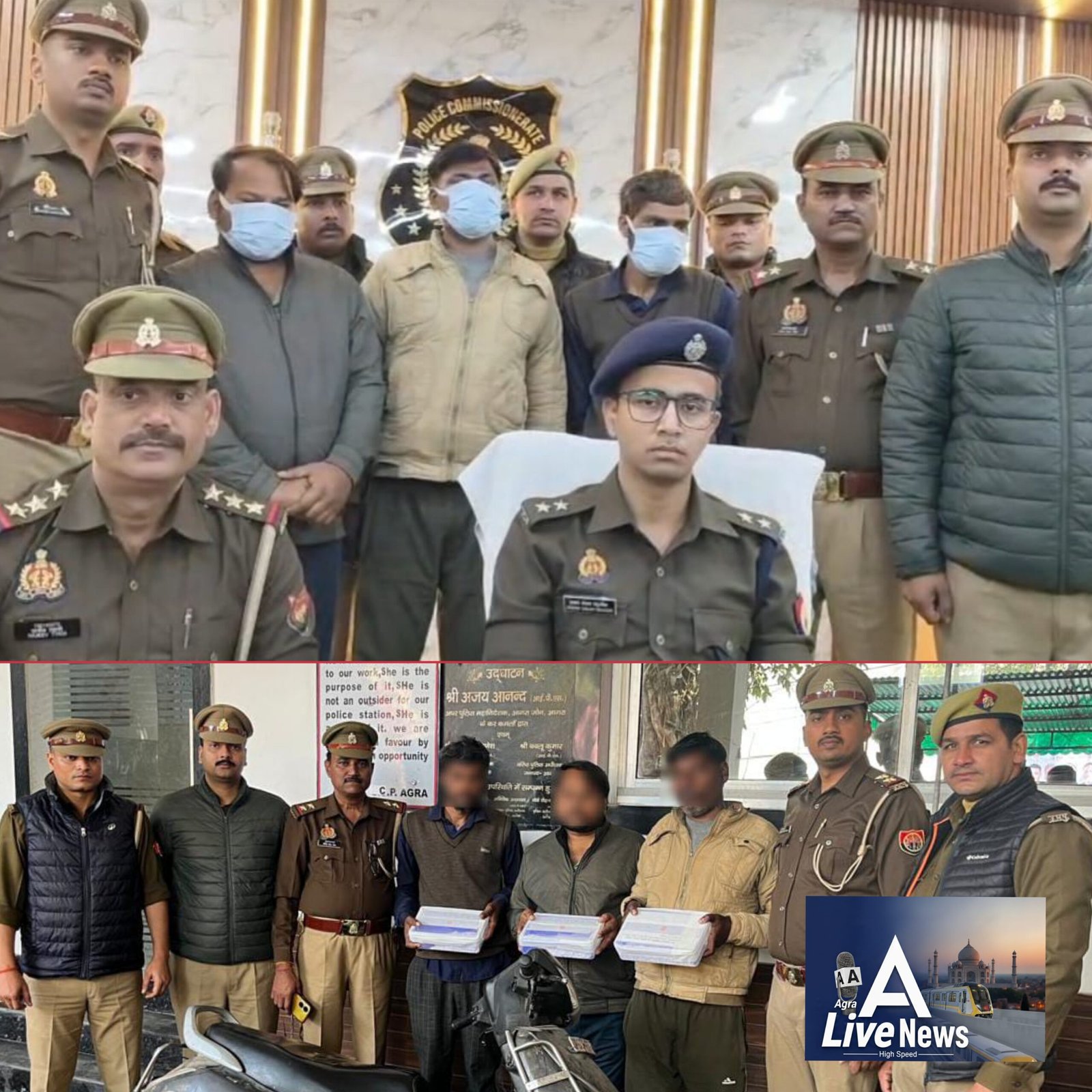 चोरी की घटना के खुलासे के लिए थाना न्यू आगरा पुलिस टीम का गठन किया गया। 16 दिसंबर 2025 को पुलिस टीम गश्त और चेकिंग के दौरान मुखबिर की सूचना पर खासपुर चौराहा, बसेरा रोड के पास पहुंची, जहां चोरी का माल बेचने की फिराक में घूम रहे तीनों अभियुक्तों को गिरफ्तार कर लिया गया। अभियुक्तों के कब्जे से चोरी की गई स्कूटी और 3 किलो 963 ग्राम चाँदी बरामद की गई। पुलिस पूछताछ में अभियुक्तों ने बताया कि कारीगर सोनू ने व्यापारी से मिली चाँदी को अपने साथियों के साथ मिलकर योजनाबद्ध तरीके से चोरी करवाई और बाद में चाँदी को आपस में बांट लिया। गिरफ्तार अभियुक्तों में सोनू कुशवाहा पुत्र पप्पू उर्फ पप्पी कुशवाहा निवासी नगला पदी, दयालबाग थाना न्यू आगरा, रवि कुमार उर्फ गोलू पुत्र पूरन चंद्र निवासी प्रकाश नगर नुनहाई थाना एत्मादौला और राजेश शर्मा पुत्र श्रीकृष्ण निवासी प्रकाश नगर थाना एत्मादौला शामिल हैं।