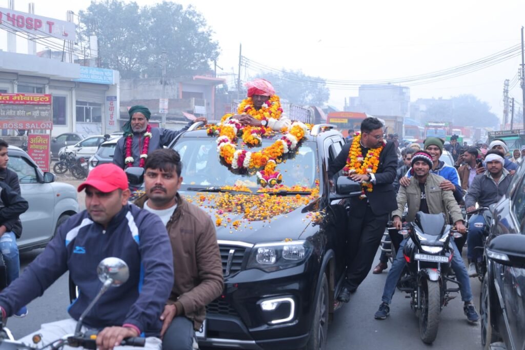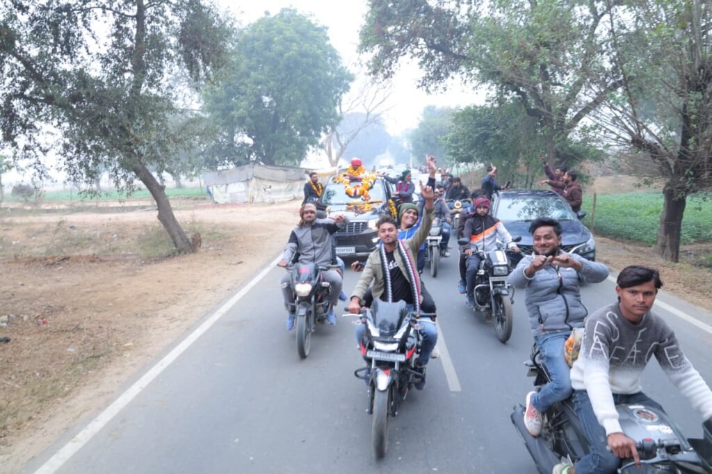 स्वागत यात्रा में सैकड़ों मारुति कारों और अन्य चारपहिया वाहनों का लंबा काफिला नजर आया, जो कई किलोमीटर तक फैला रहा। सड़कों के दोनों ओर हजारों ग्रामीण, युवा और बुजुर्ग खड़े दिखाई दिए। सभी के चेहरे पर गर्व और खुशी साफ नजर आ रही थी।