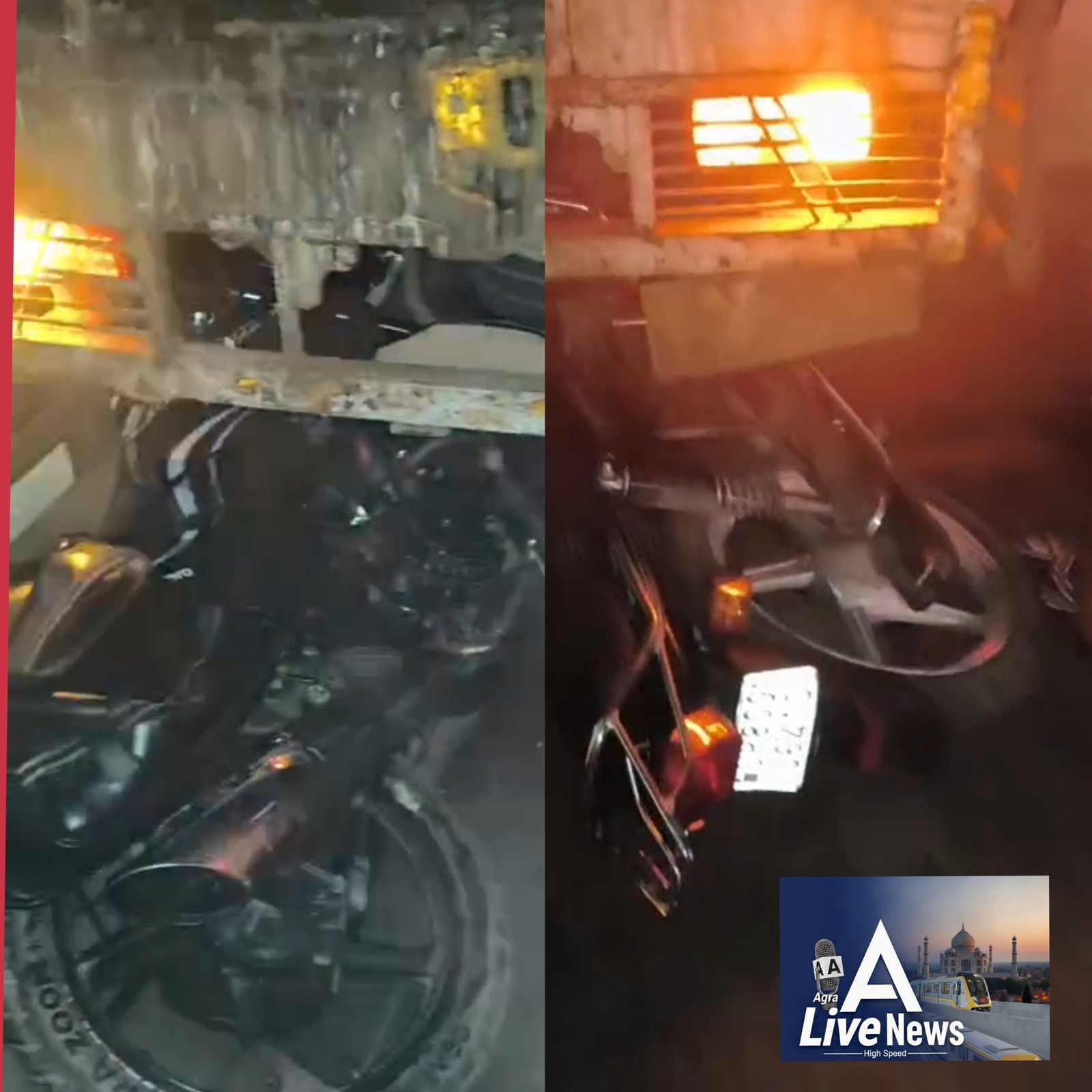 आगरा लाईव न्यूज। घने कोहरे के कारण शनिवार देर रात आगरा में दो अलग-अलग स्थानों पर भीषण हादसे हो गए। सबसे गंभीर दुर्घटना स्ट्रैची ब्रिज पर हुई, जहाँ कोहरे में दृश्यता बेहद कम होने के बावजूद एक कैंटर को ब्रिज पर प्रवेश दिया गया। करीब रात 11.30 बजे घाट की ओर से बेलनगंज की तरफ जा रहे कैंटर ने आगे चल रही दो बाइकों को जोरदार टक्कर मार दी। टक्कर के बाद दोनों बाइक कैंटर के नीचे फंस गईं और कुछ दूरी तक घिसटती चली गईं।