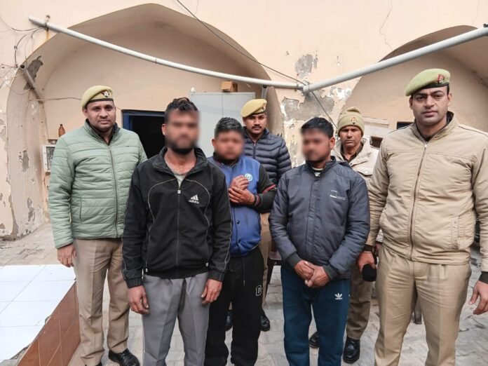 आगरा लाईव न्यूज। थाना ताजगंज क्षेत्र में बाड़े से भैंस चोरी की घटना का पुलिस ने सफल अनावरण करते हुए तीन शातिर अभियुक्तों को गिरफ्तार किया है। पुलिस ने अभियुक्तों के कब्जे से चोरी की गई एक भैंस, घटना में प्रयुक्त छोटा हाथी लोडर, एक स्कूटी तथा 1,300 रुपये नकद बरामद किए हैं, जबकि चोरी में शामिल दो अन्य आरोपी फरार बताए जा रहे हैं। नगला महादेव, थाना ताजगंज निवासी ने पुलिस को बताया कि उसके घर के बाहर बने बाड़े में आठ भैंसें बंधी थीं। 25/26 दिसंबर 2025 की रात अज्ञात चोरों ने बाड़े से दो भैंसें चोरी कर लीं। सुबह होने पर जब उसने पड़ोस में लगे सीसीटीवी कैमरों की फुटेज खंगाली तो दो अज्ञात व्यक्ति भैंसों को ले जाते हुए दिखाई दिए।