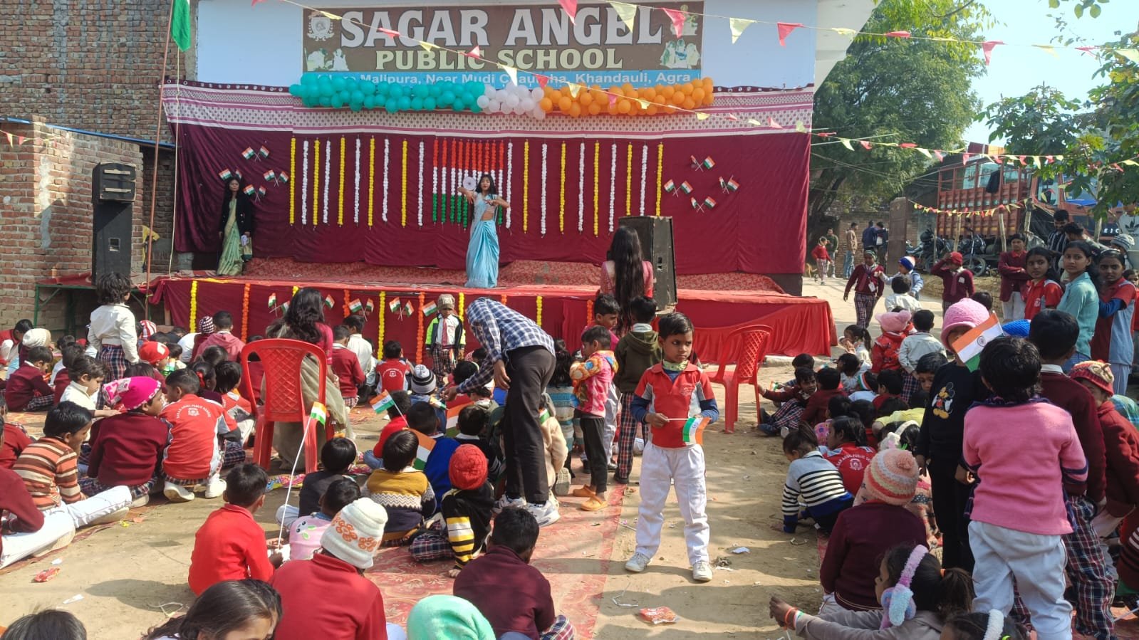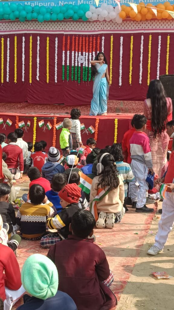 कार्यक्रम के दौरान छात्र-छात्राओं ने देशभक्ति गीतों पर मनमोहक नृत्य, सांस्कृतिक प्रस्तुतियां एवं रंगोली प्रतियोगिता में प्रतिभाग कर अपनी प्रतिभा का प्रदर्शन किया। हर बच्चे के हाथ में लहराता तिरंगा और बच्चों के जोश ने कार्यक्रम को विशेष बना दिया। उपस्थितजनों ने बच्चों की प्रस्तुतियों की सराहना करते हुए उनका उत्साहवर्धन किया। इस अवसर पर पप्पू सिंह बघेल, चंद्रपाल सिंह, हरिओम, राहुल बघेल, मानवेंद्र, गोपाल, सुंदरी, रामू, नेता वीरेंद्र, गोलू, योगेंद्र सहित क्षेत्र के अनेक गणमान्य नागरिक मौजूद रहे। विद्यालय परिवार की ओर से अध्यापक रितु, रंजना, वर्षा, चंचल, गोपाल एवं छत्रपाल सहित समस्त स्टाफ उपस्थित रहा। कार्यक्रम शांतिपूर्ण, गरिमामय एवं सफलतापूर्वक संपन्न हुआ।